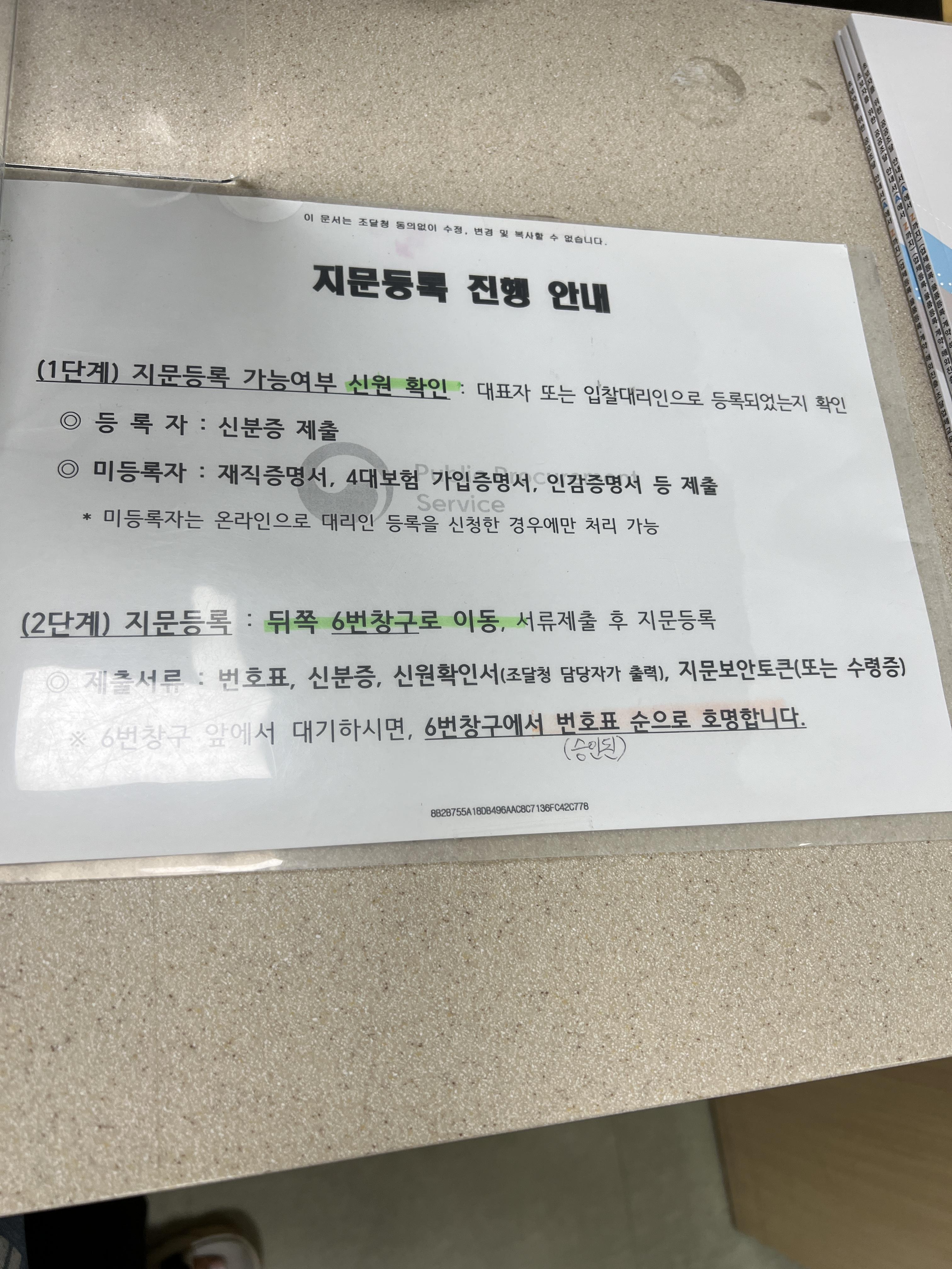 가까운 조달청에 지문보안토큰을 수령하러 방문하였습니다.